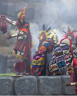 Finalizada la ceremonia en la plaza de armas, siempre con la asistencia de nuestro guía, nos dirigiremos hacia nuestra movilidad que nos llevará hasta Sacsayhuaman, donde se escenificará la ceremonia principal de ofrecimiento, agradecimiento y pedidos al "Dios Sol", la ceremonia principal tiene una duración de 3 horas aproximadamente, para disfrutar de este espectáculo tendremos asientos reservados. Terminada la ceremonia abordaremos de forma ordenada nuestra movilidad para retornar hasta el Cusco.