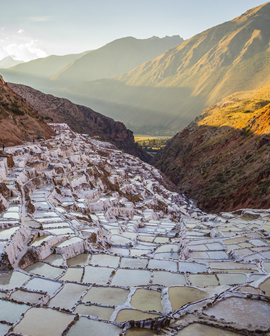Nuestro transfer lo visitara en su hotel entre las 08:00 hrs y 8:30 hrs aprox. Comenzaremos visitando Moray el cual está ubicado a 38 km de la ciudad del Cusco, Moray es considerado como un laboratorio agrícola inca. El cual se encuentra conformado por 4 muyus o círculos, los cuales son andenes circulares en forma concéntrica, la más profunda es de 80 mts de depresión teniendo el andén más bajo 36 mts. De diámetro. También se encuentra dentro de los andenes variaciones de temperaturas que van desde 0.5 a 1.5 ° c por anden, los cuales pueden reproducir hasta 20 diferentes tipos de microclimas. Seguidamente visitaremos las Salineras de Maras, como indica su nombre son minas de sal formadas por alrededor de 5000 posas pequeñas produciendo cada posa aproximadamente entre 50 a 80 kilos de Sal por estación. Estas son regadas por un manantial de agua salada subterránea, este proceso es completamente natural y dura casi dos meses para una estación de cultivo, la Sal de Maras es muy solicitada y la variedad de mayor calidad es la sal mineral Rosada. Regresamos a Cusco donde nuestro tour finaliza aprox. a las 14:00 horas, culminando de esta forma nuestro tour a las minas de sal de Maras.