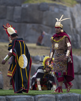 Finalizada la ceremonia en la plaza de armas, siempre con la asistencia de nuestro guía, nos dirigiremos hacia nuestra movilidad que nos llevará hasta Sacsayhuaman, donde se escenificará la ceremonia principal de ofrecimiento, agradecimiento y pedidos al "Dios Sol", la ceremonia principal tiene una duración de 3 horas aproximadamente, para disfrutar de este espectáculo tendremos asientos reservados. Terminada la ceremonia abordaremos de forma ordenada nuestra movilidad para retornar hasta el Cusco.